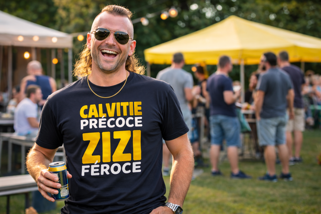 Le T-shirt beauf joue sur l’exagération. Il assume les clichés, détourne les expressions populaires et affiche des messages volontairement excessifs. Ce décalage crée un humour accessible à tous. Même la personne qui le porte sait que c’est du second degré.